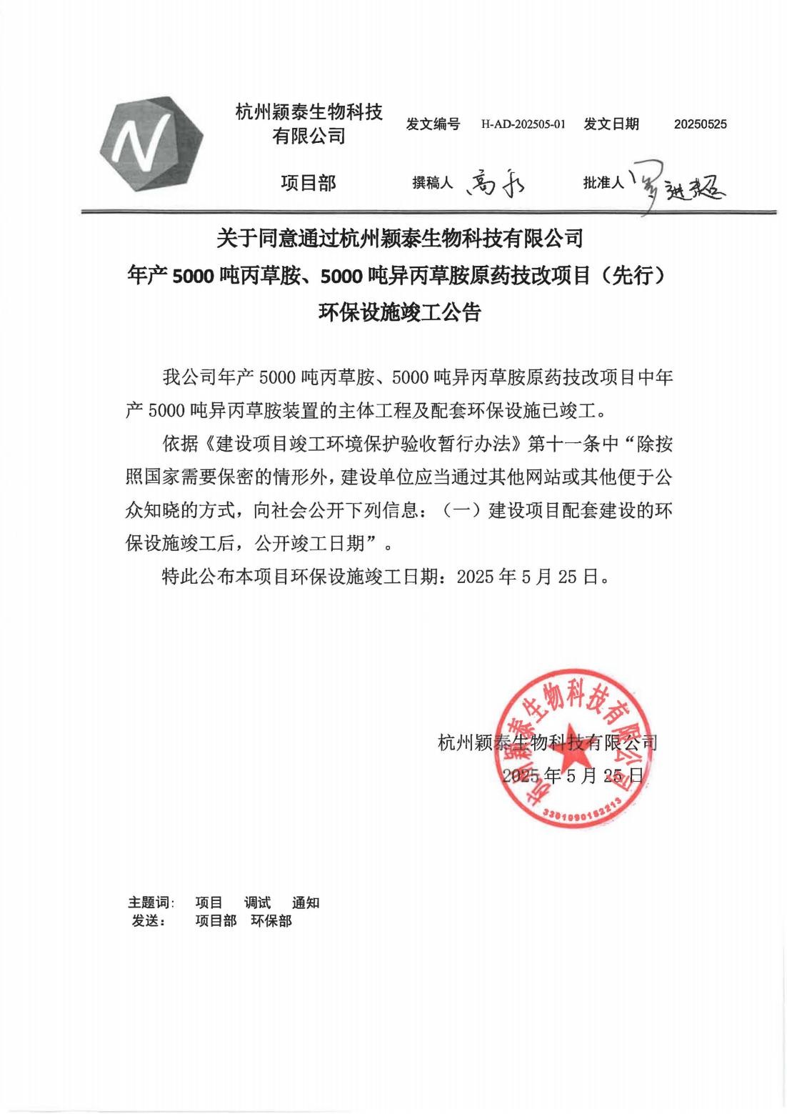 ÌØ´ËÐû²¼±¾ÏîÄ¿»·±£ÉèÊ©Í깤ÈÕÆÚ:2025Äê5ÔÂ25ÈÕ¡£